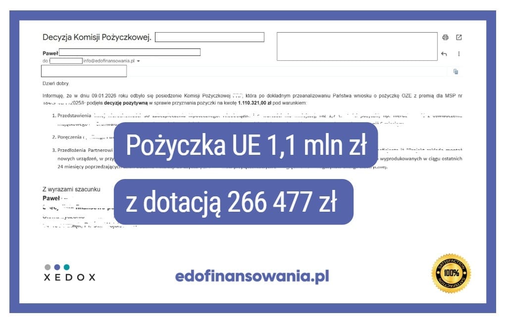 Preferencyjna pożyczka unijna z premią dla mikro, małych i średnich przedsiębiorstw z województwa warmińsko-mazurskiego, na inwestycje w odnawialne źródła energii.